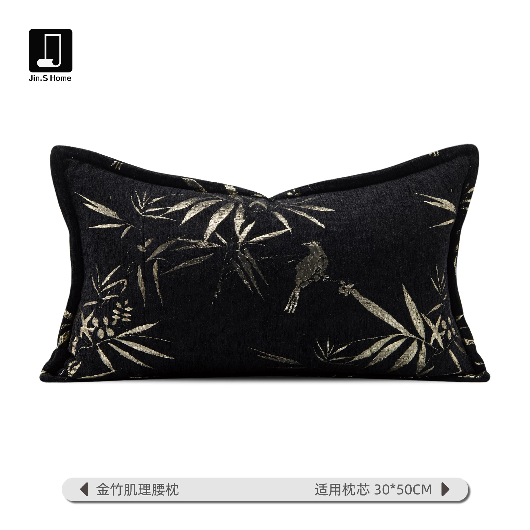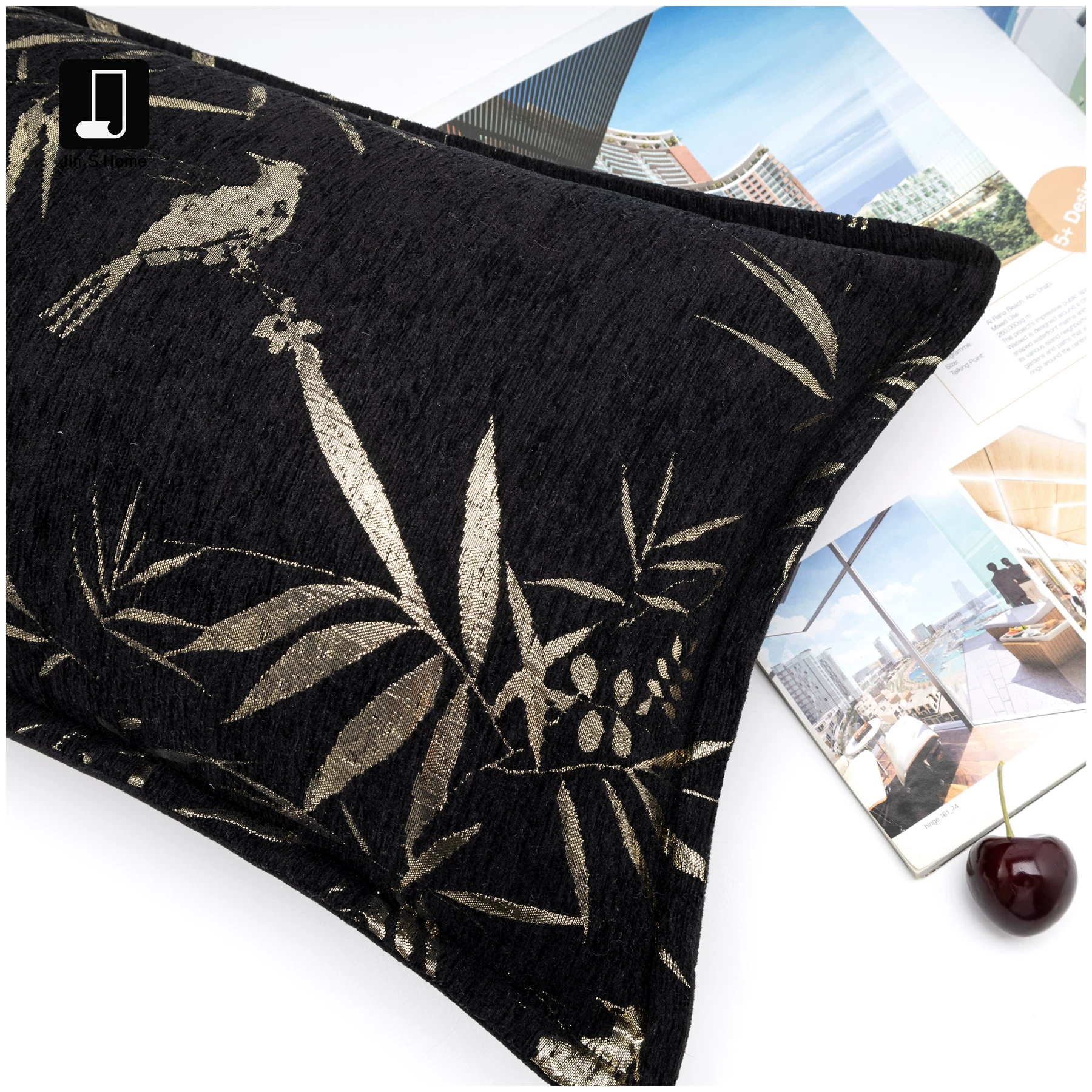 Luxury-style black and gold square cushion covers for villa sofas; vintage-style model home and showroom bed cushions