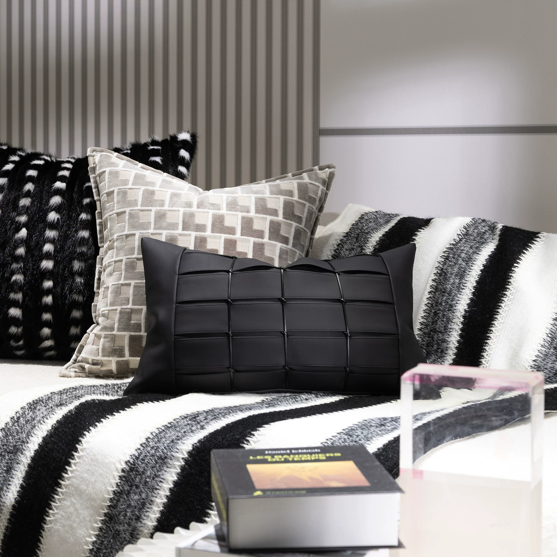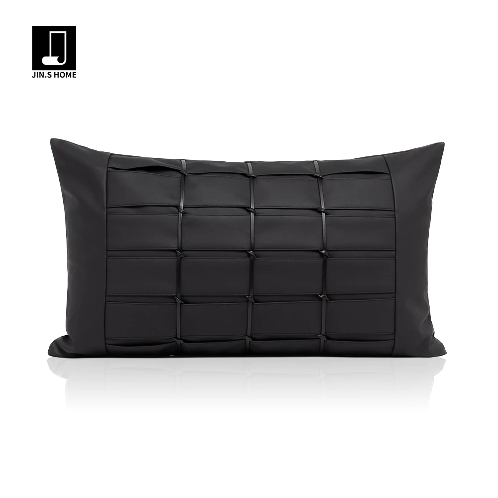 Cushions for Sofas and Living Rooms: Light Luxury, High-End, Modern Minimalist Showroom-Style Black-and-White Checkered Leather Embroidered Headboard and Armrest Cushions