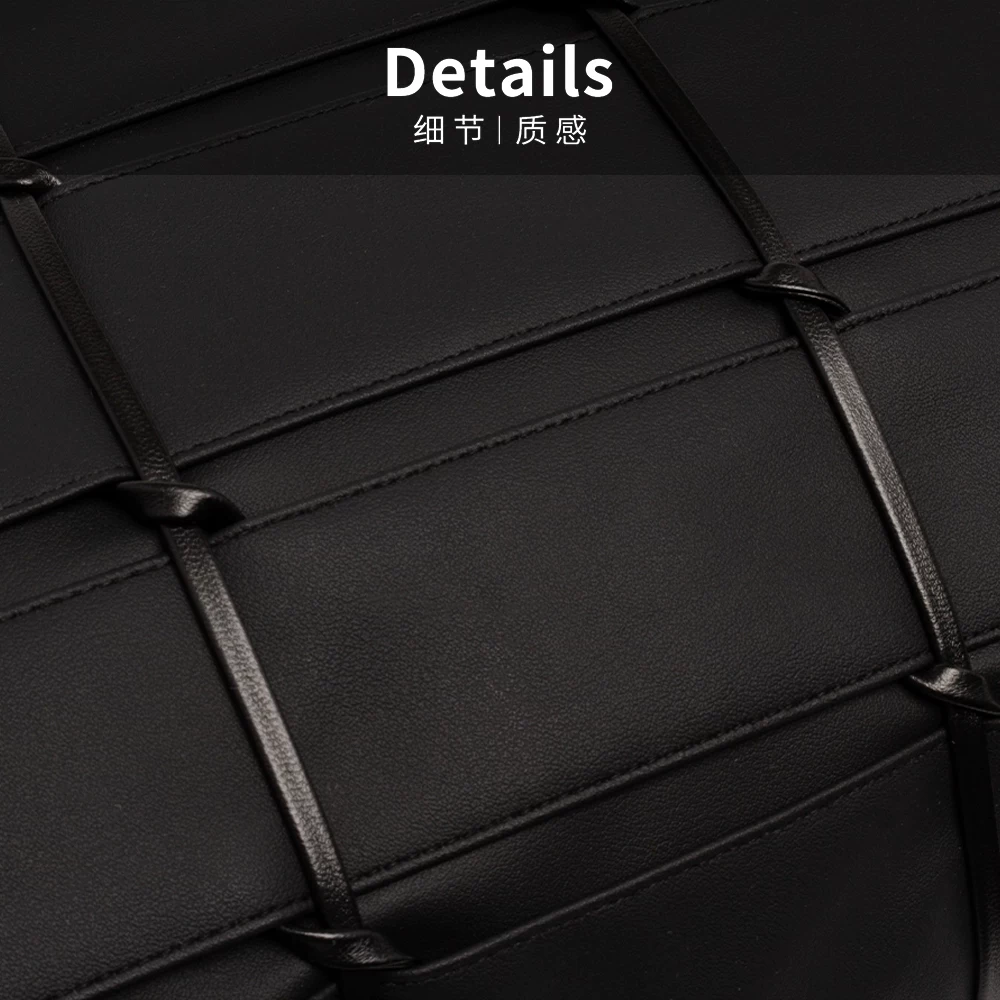 Minimalist Modern Scandinavian-Style Sofa for Show Home and Sales Office: Light Luxury Black Leather Hand-Woven Lumbar Pillow