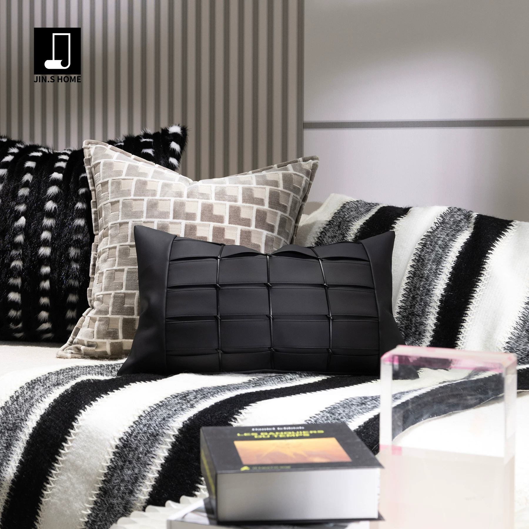 Cushions for Sofas and Living Rooms: Light Luxury, High-End, Modern Minimalist, Beige and Black Striped Fabric, Creative Patchwork, Headboard and Armrest Cushions