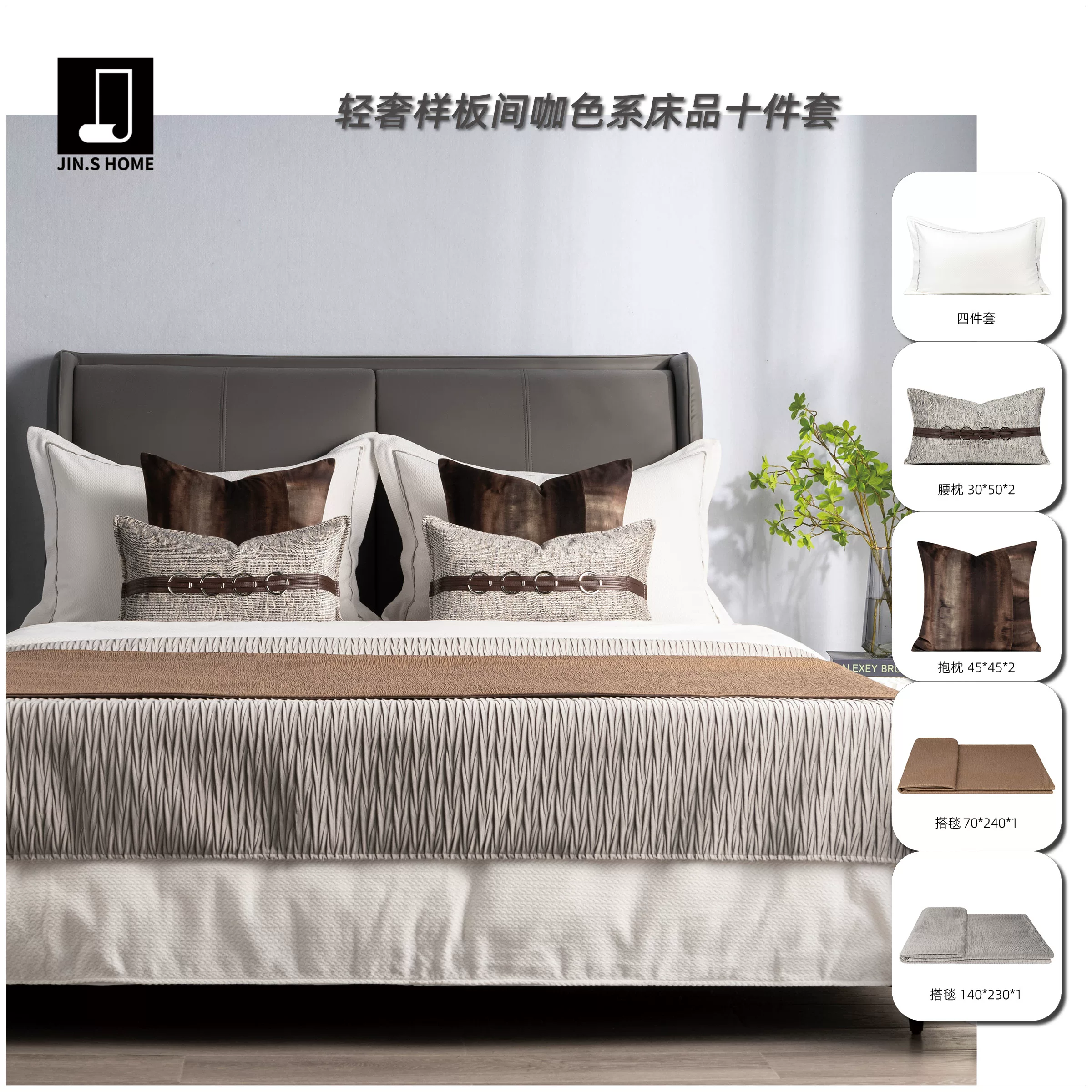 Modern Luxury-Chic Model Unit: 10-Piece Brown-Toned Bedding Set for Guesthouses and Villas—High-End Multi-Piece Bedding Sets for Showrooms