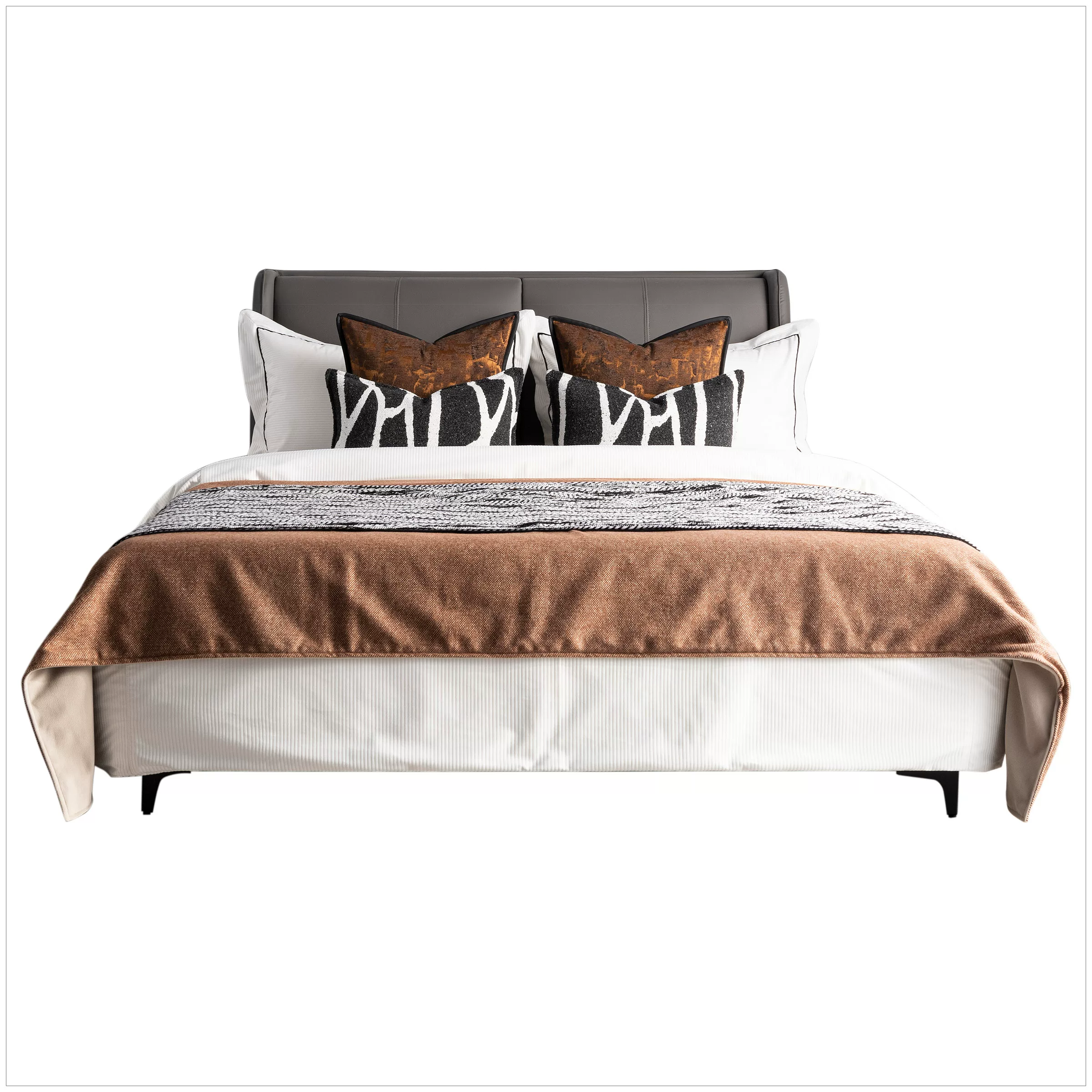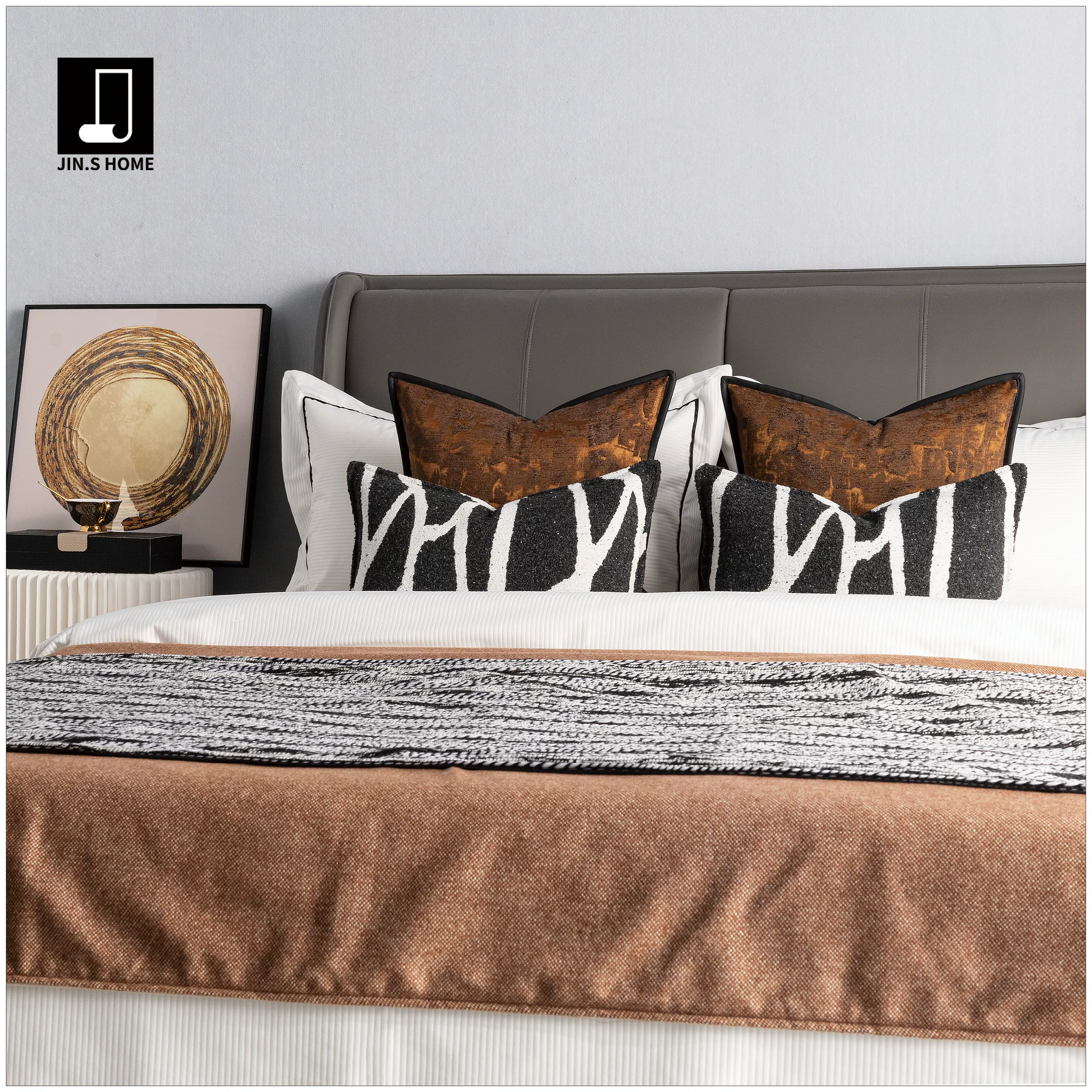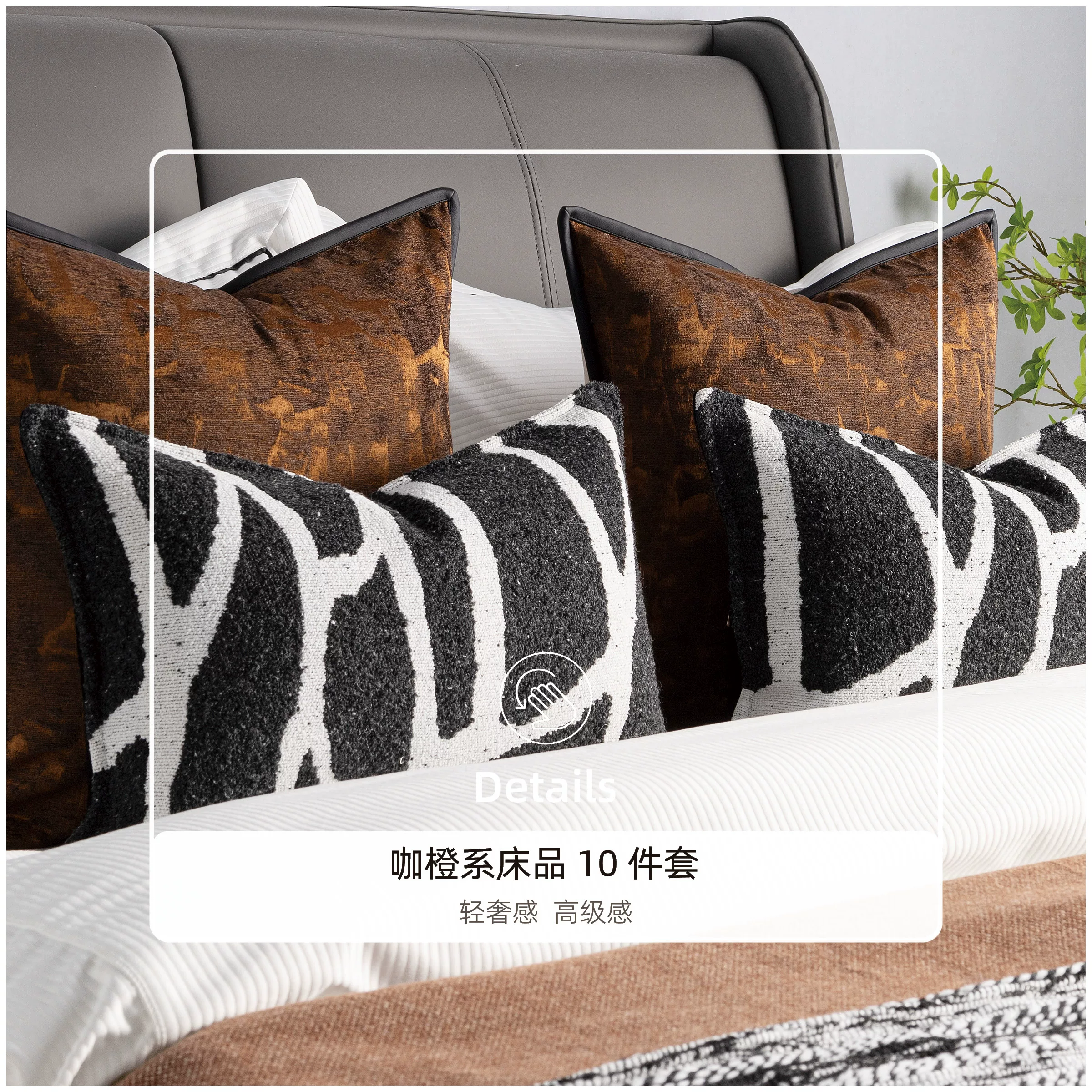 Modern Luxury-Chic Soft Furnishings Showroom: 10-Piece Bedding Set in Coffee and Orange Tones; 4-Piece Bedding Set for Hotel Furniture Showroom