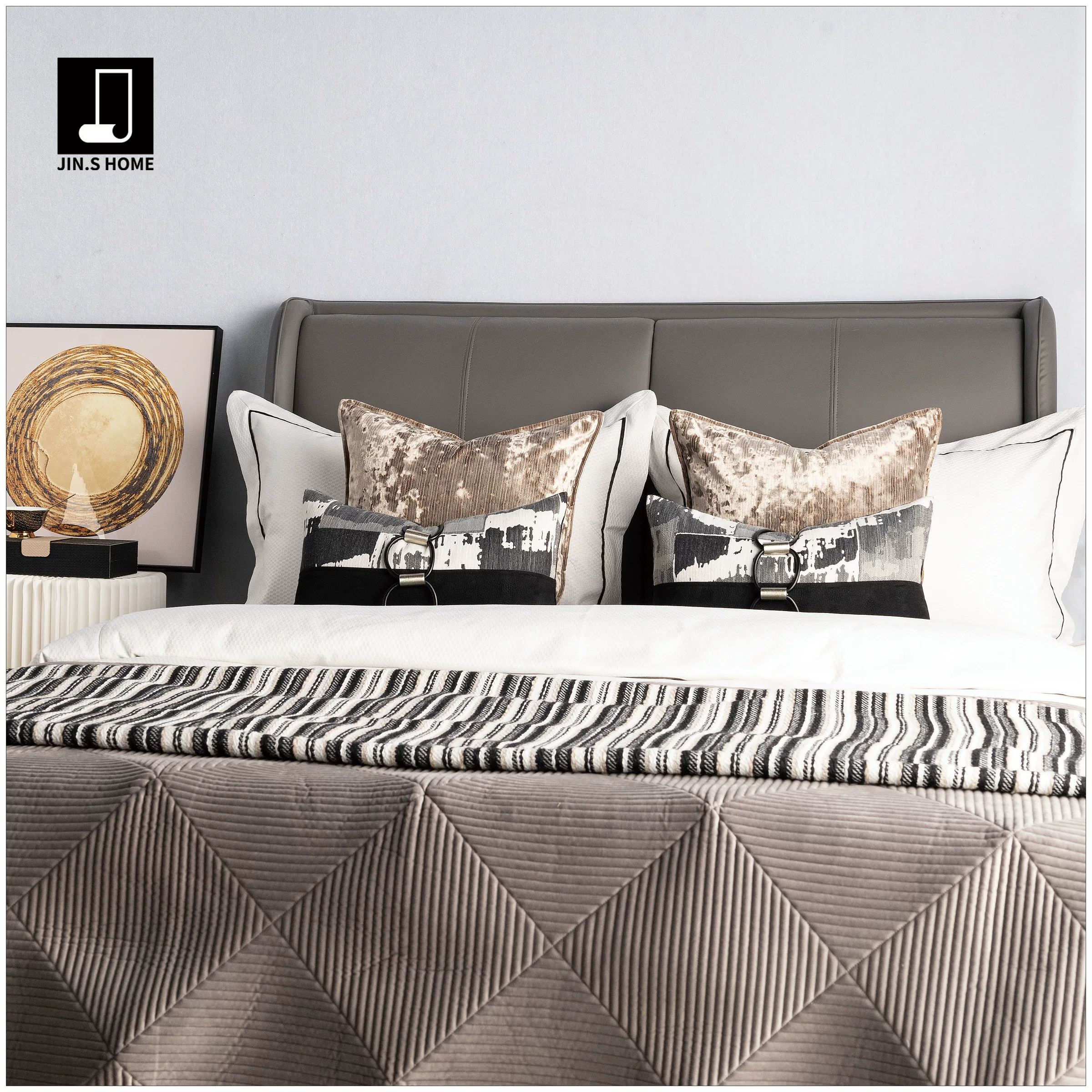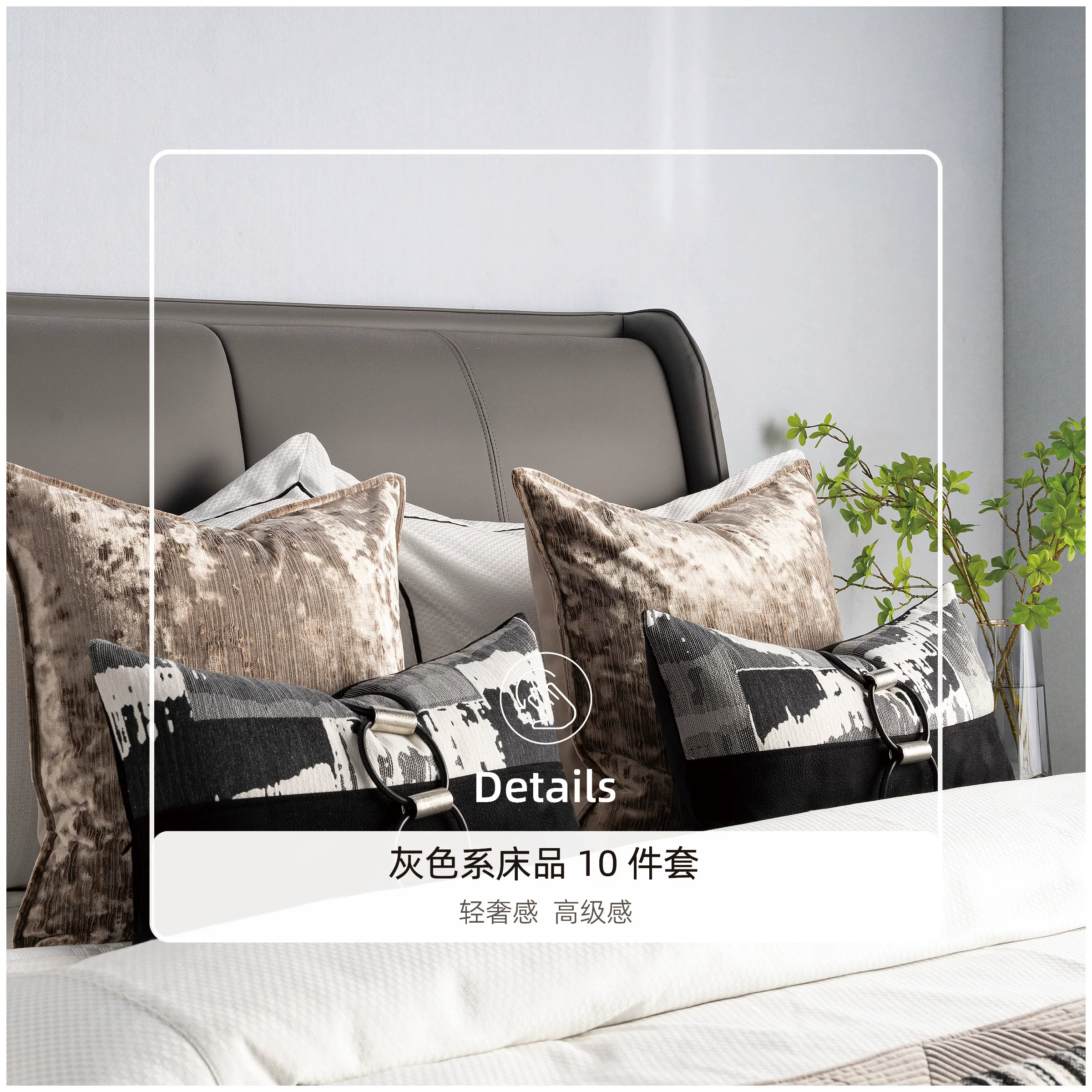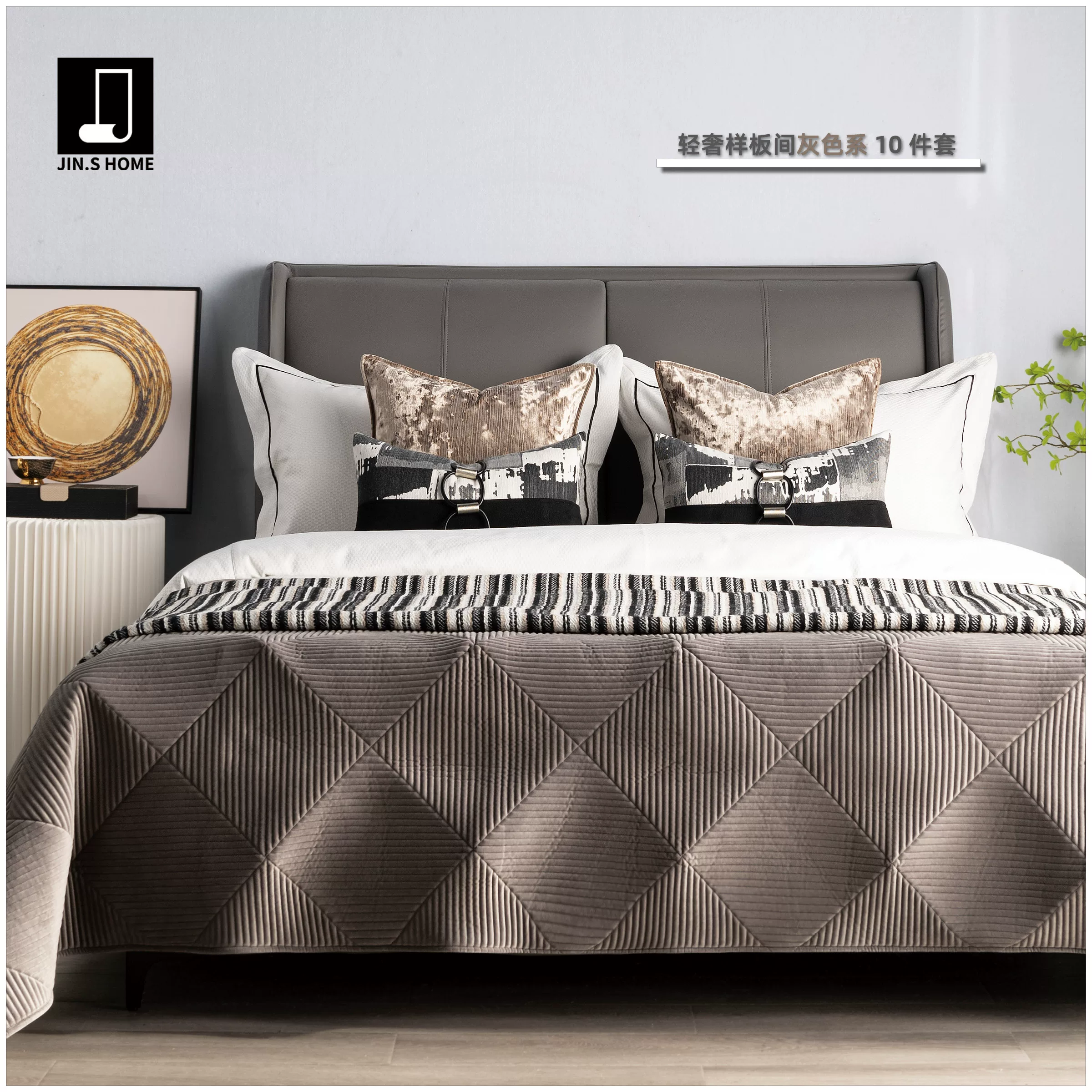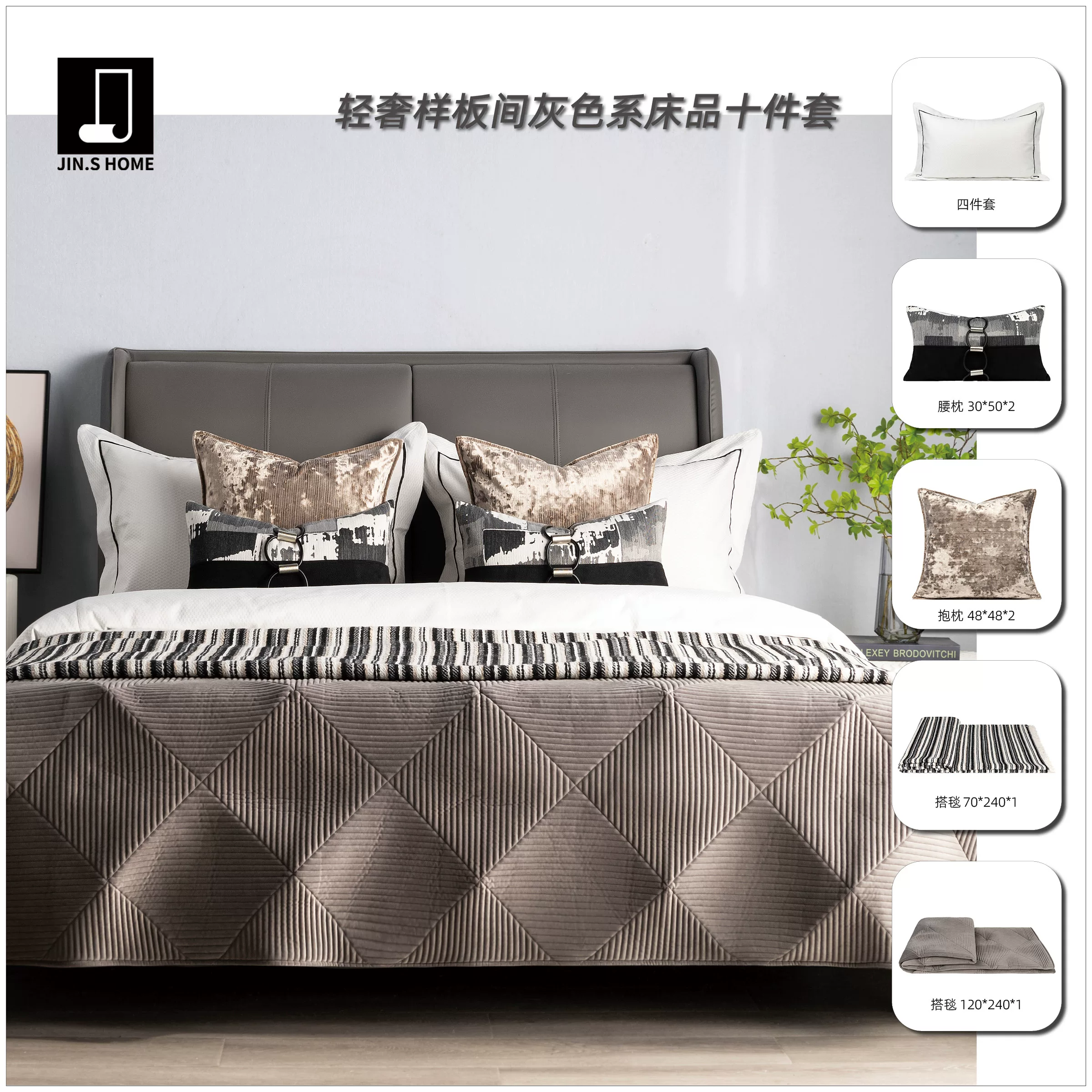 Modern Luxury Showroom: 10-Piece Gray Bedding Set; 4-Piece Bedding Set for Hotel Furniture Showroom