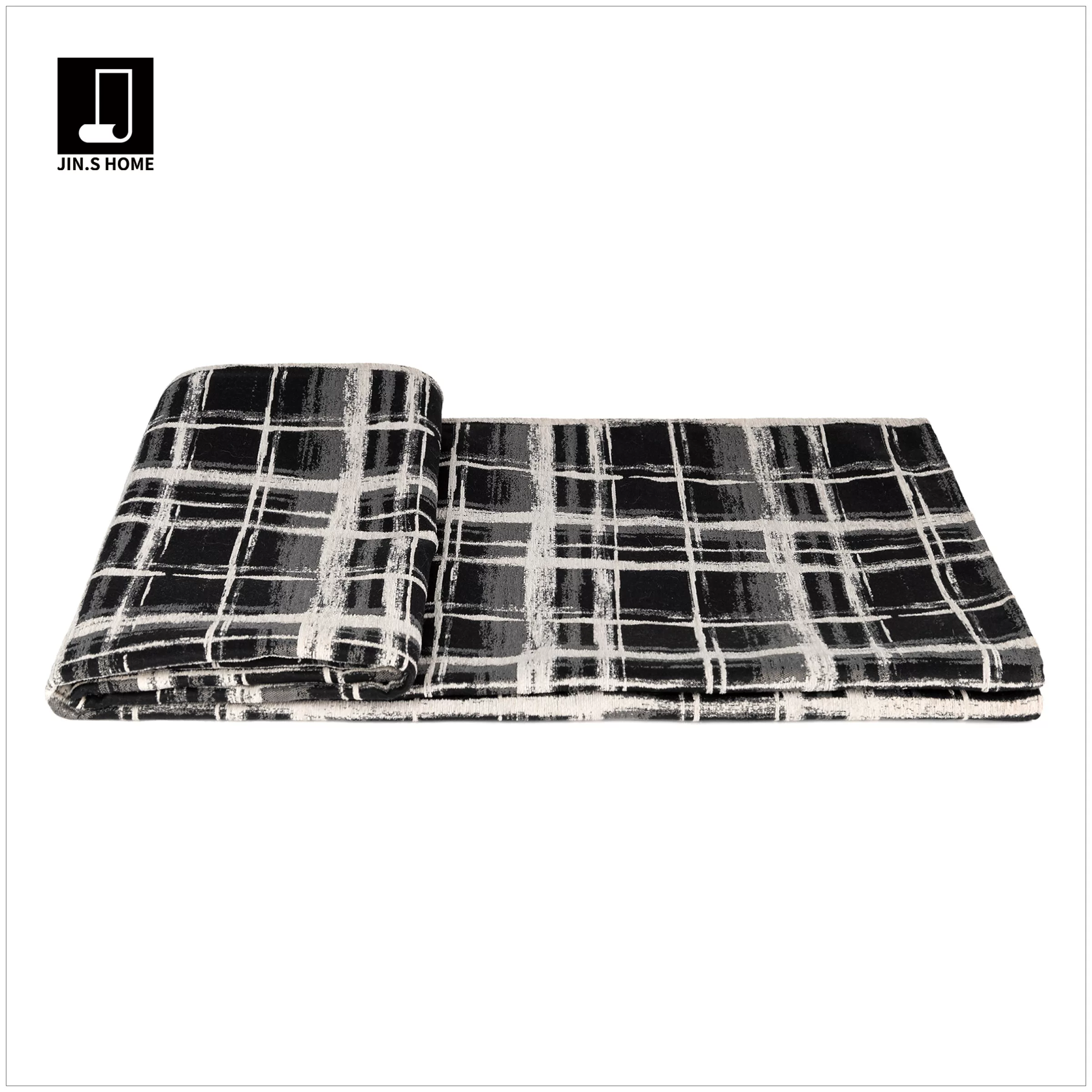 Modern Nordic-style model villa throw blanket; hotel-style Italian-inspired luxury sofa throw; black-and-white striped footboard throw
