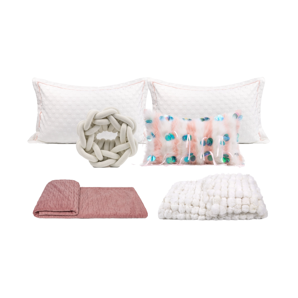 Soft Furnishings for Children’s Rooms: Showroom Bedding Set – Modern Girl’s Room, Pink Polka Dot Bedding, 8-Piece Set
