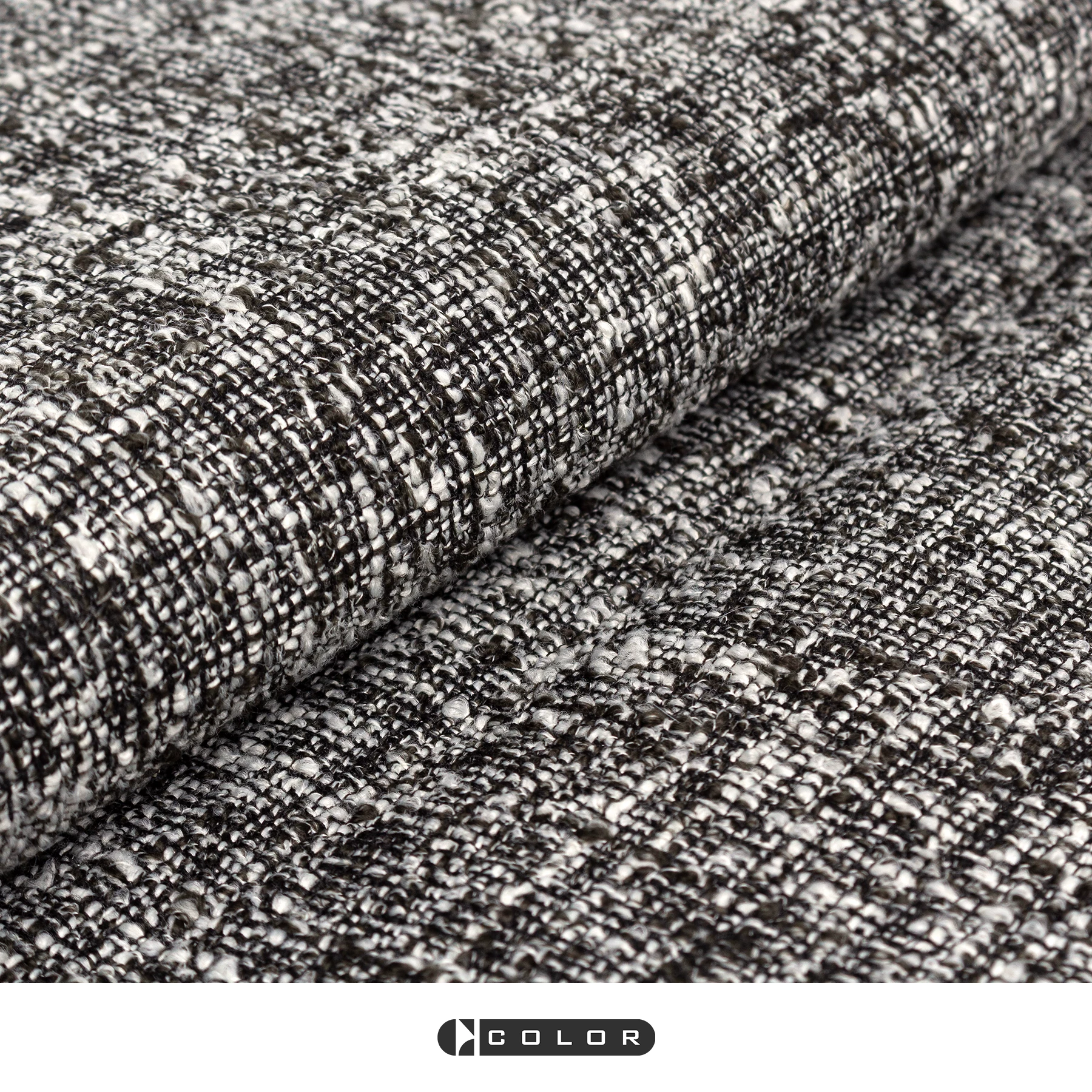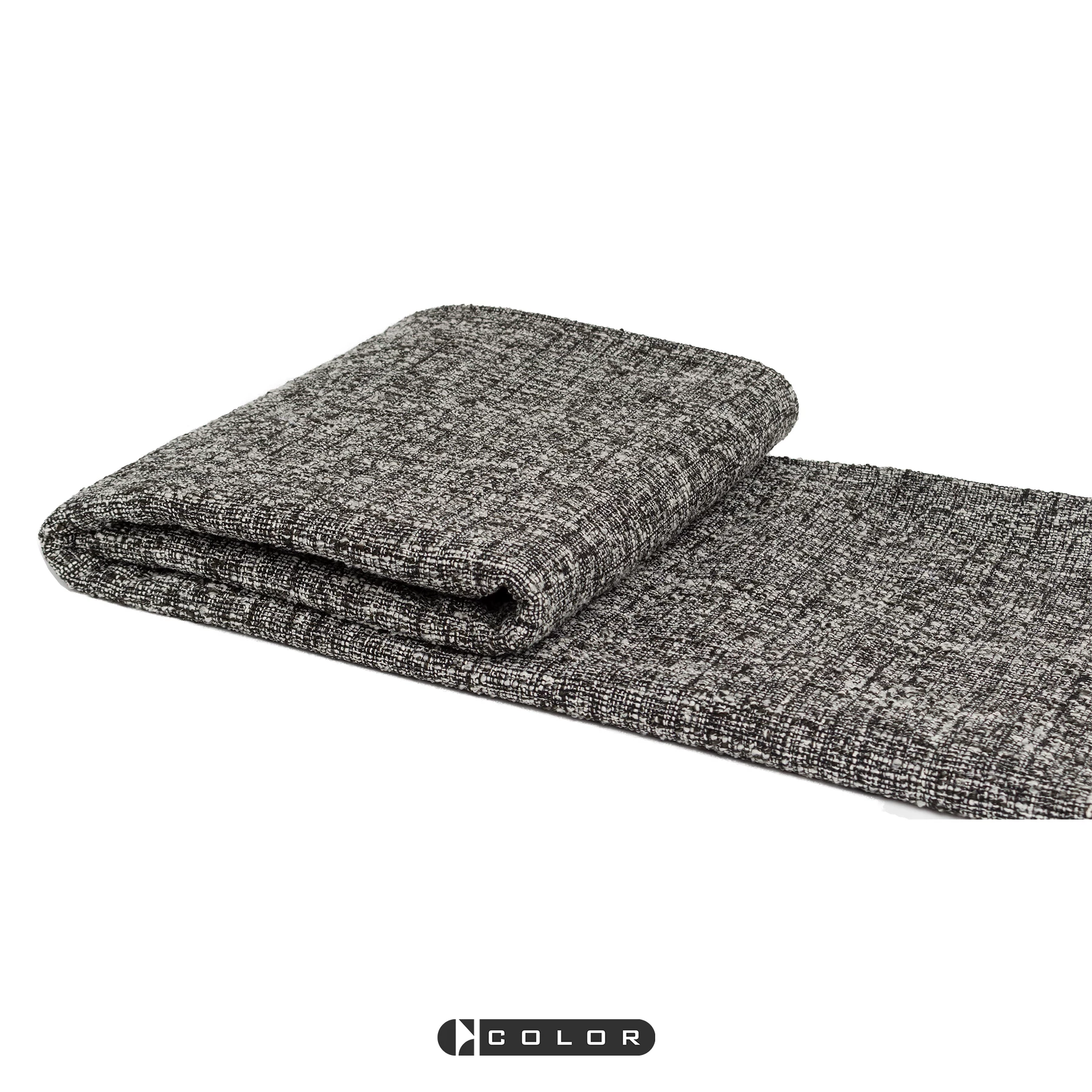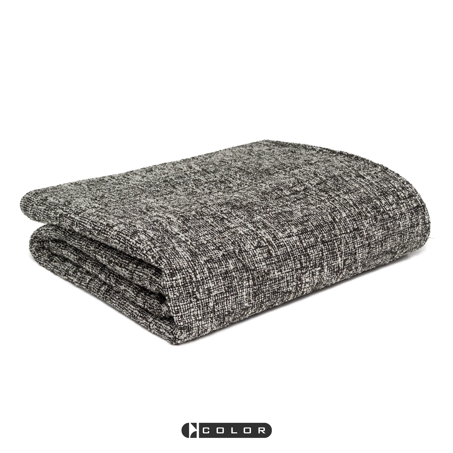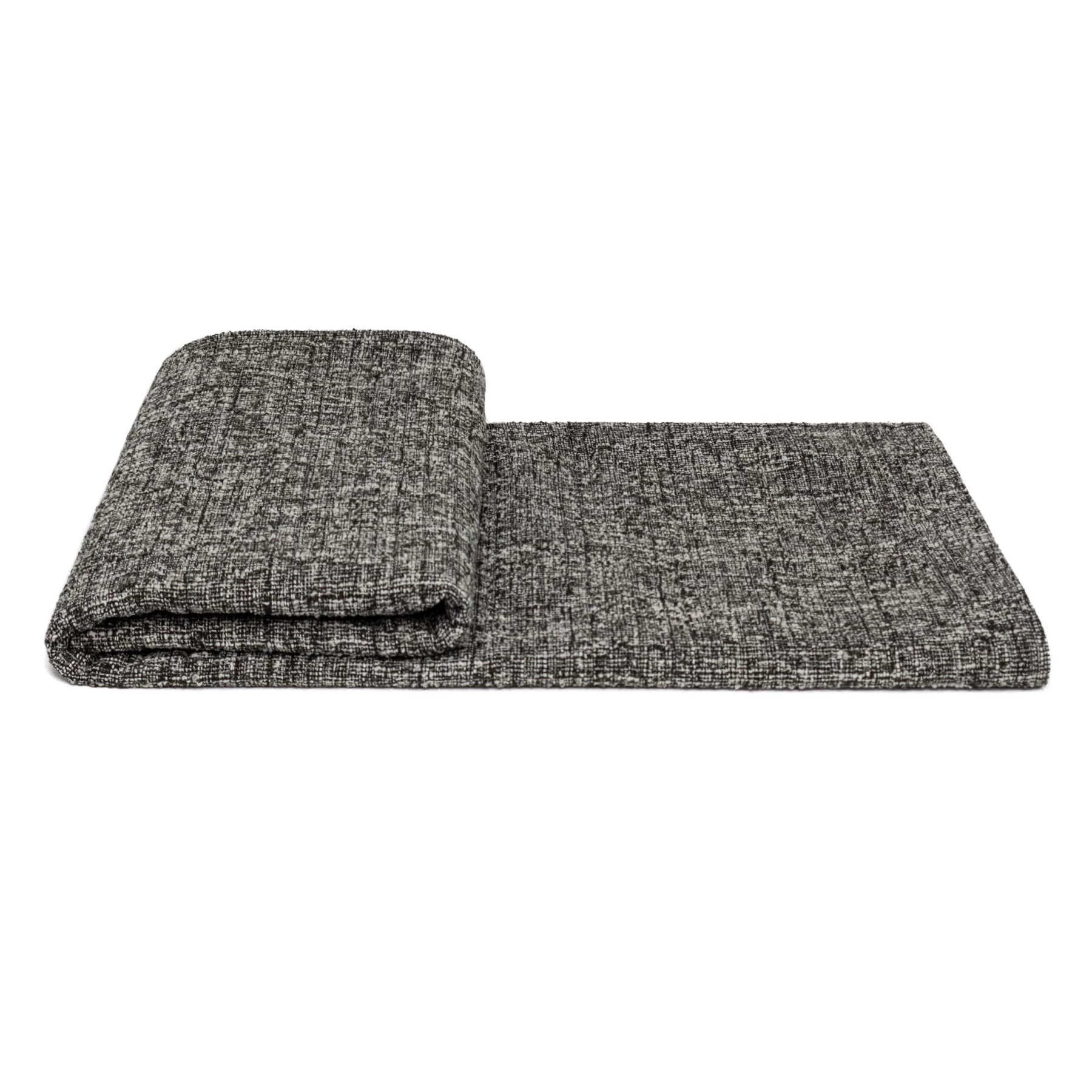 Soft Furnishings for Model Homes: Scandinavian Modern and Italian-Style Luxury Living Room with Bay Window—Black-and-White Cotton-Linen Textured Throw and Lounge Blanket