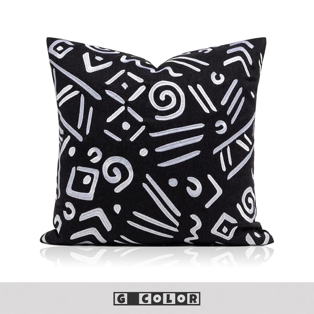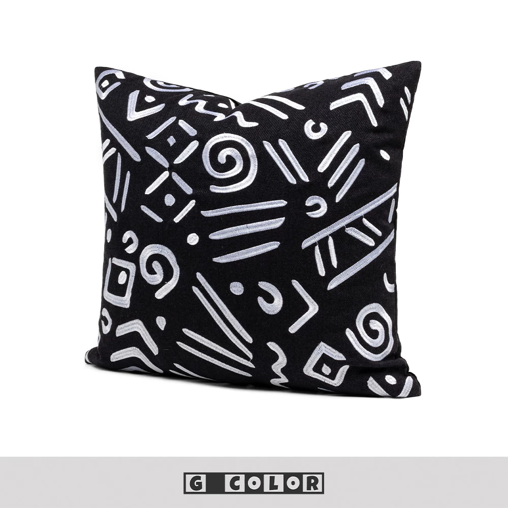Showroom Sofa Living Room Light Luxury High-End Black and White Shag Pillows Hotel Villa Bay Window Bedside Cushions Pillow Covers