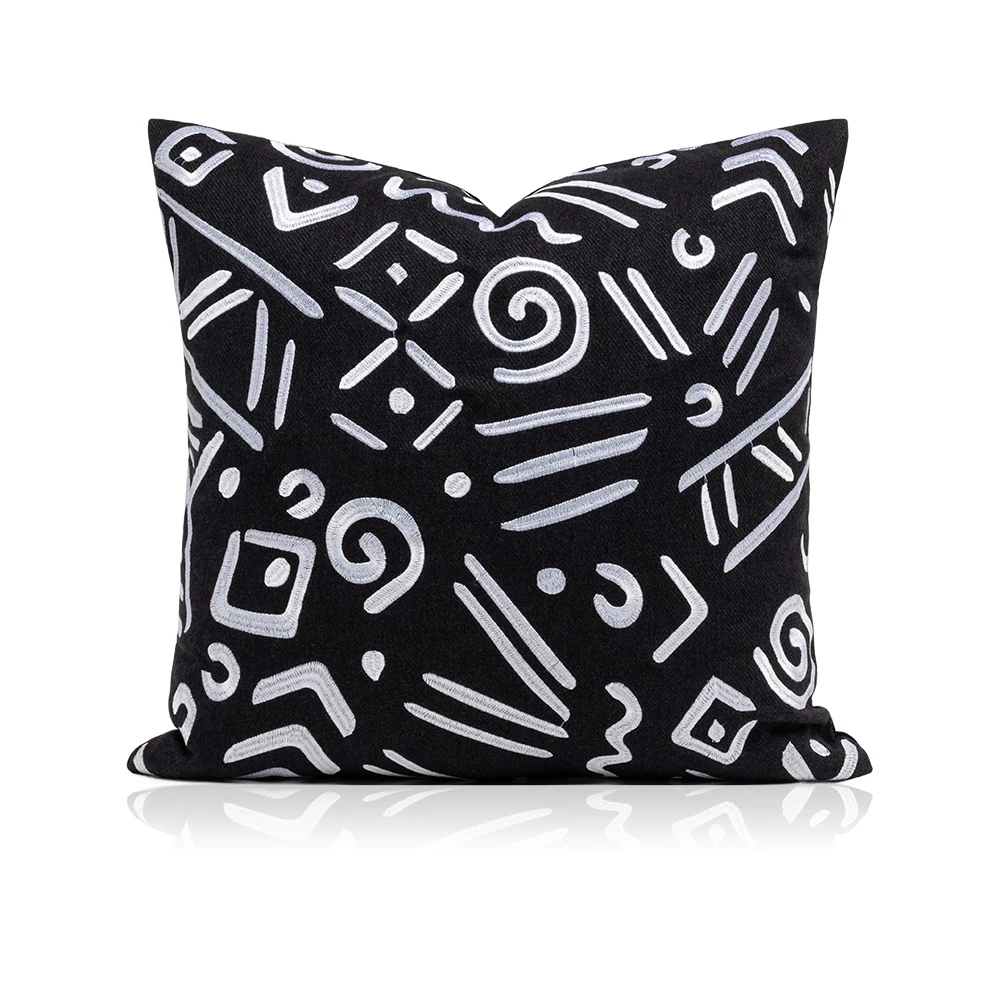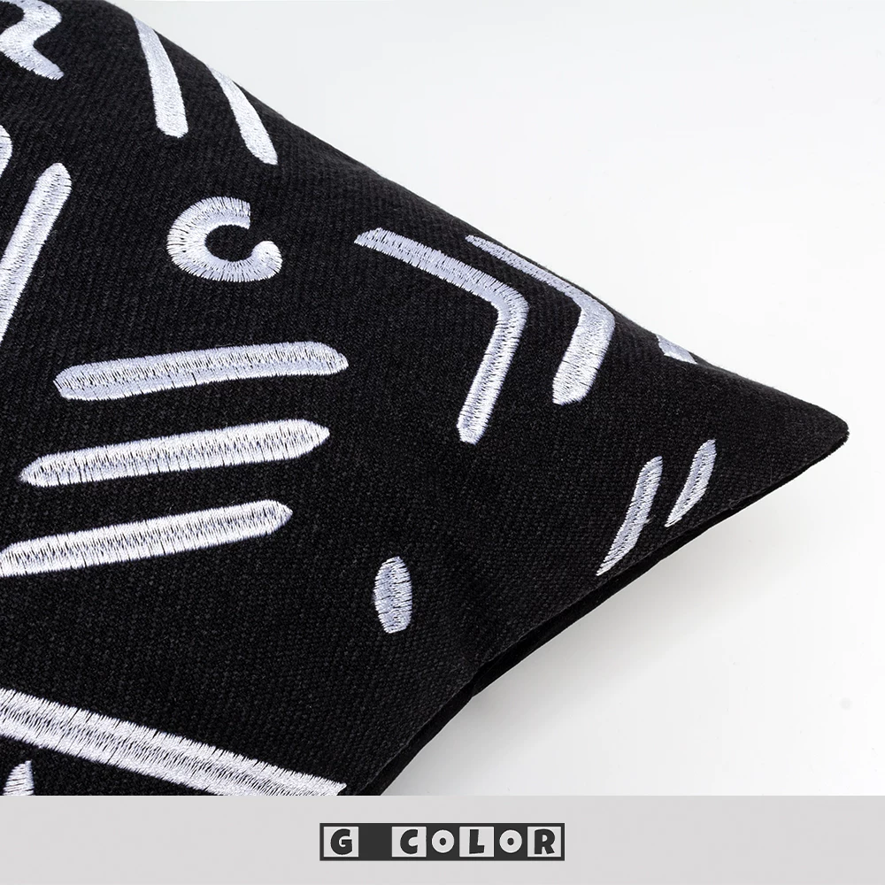 Cushions for Sofas and Living Rooms: Light Luxury, High-End, Modern Minimalist Black and White Wool-Wrapped Embroidered Round Bedside Cushions and Cylindrical Cushions