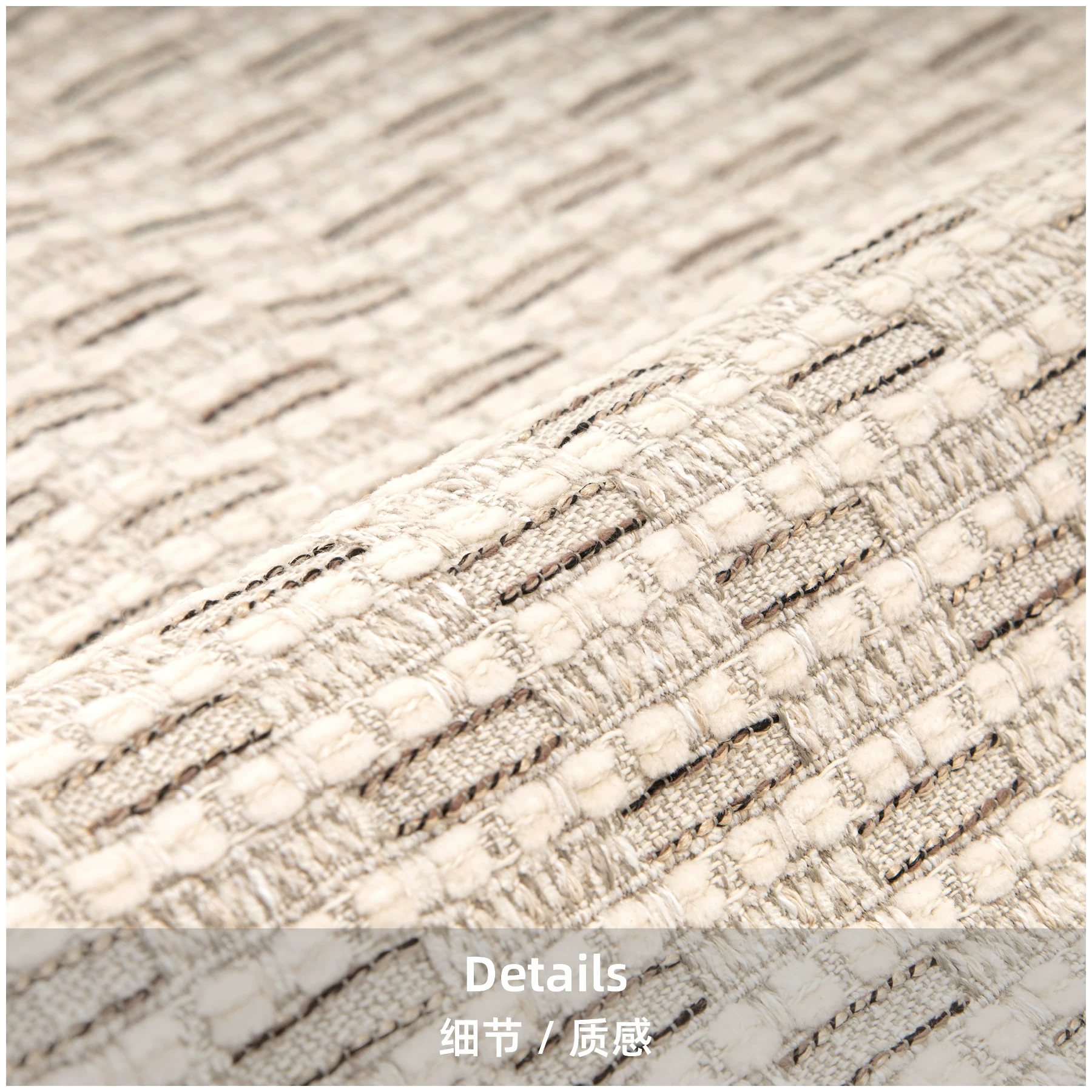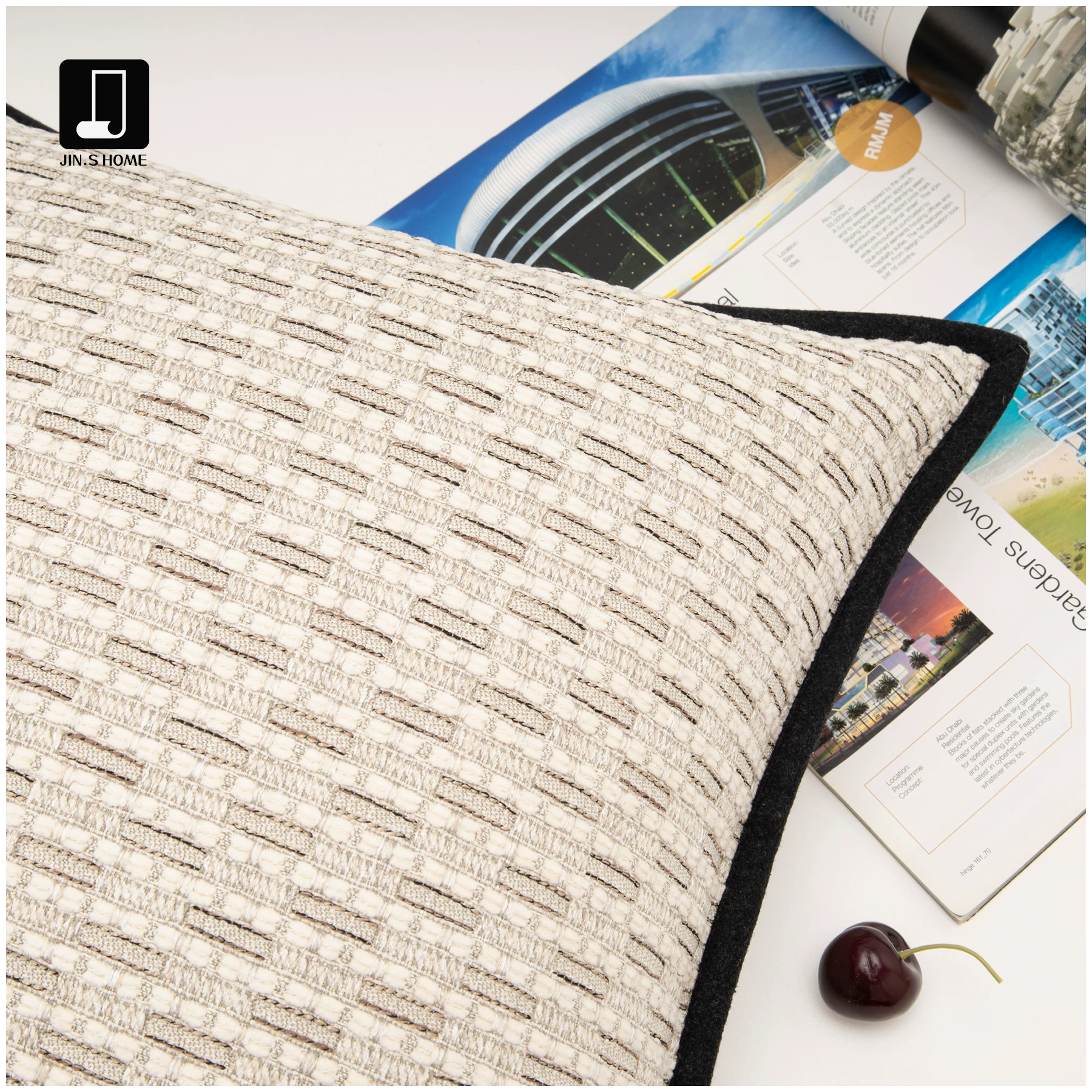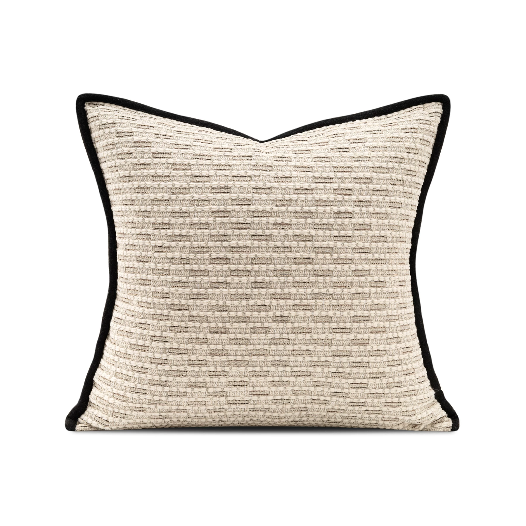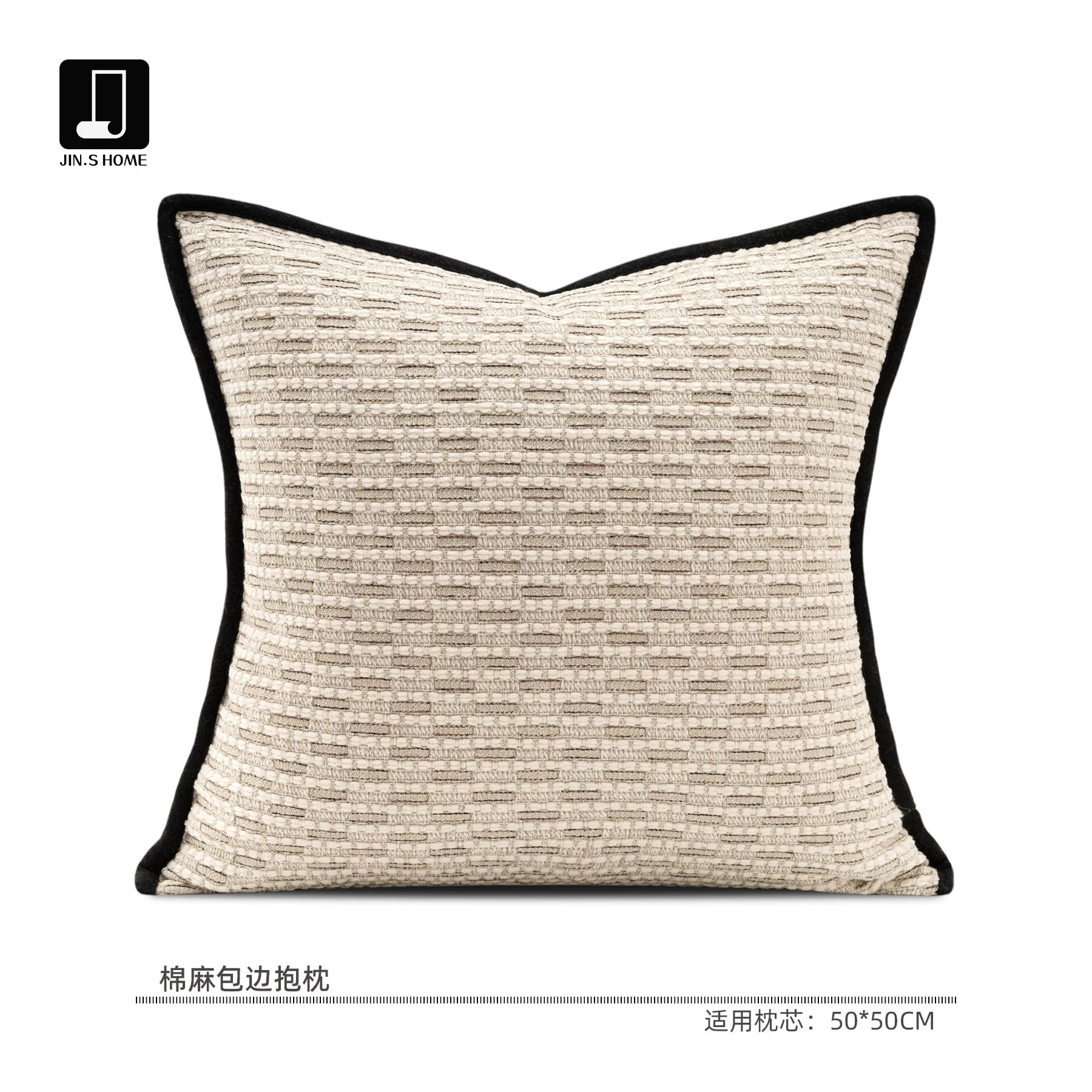 Jinshi Showroom: Cushions, Sofa, Living Room, Light Luxury, Beige Cotton-Linen Blend, Striped Square Pillows, Orange-Trimmed Cushion Covers