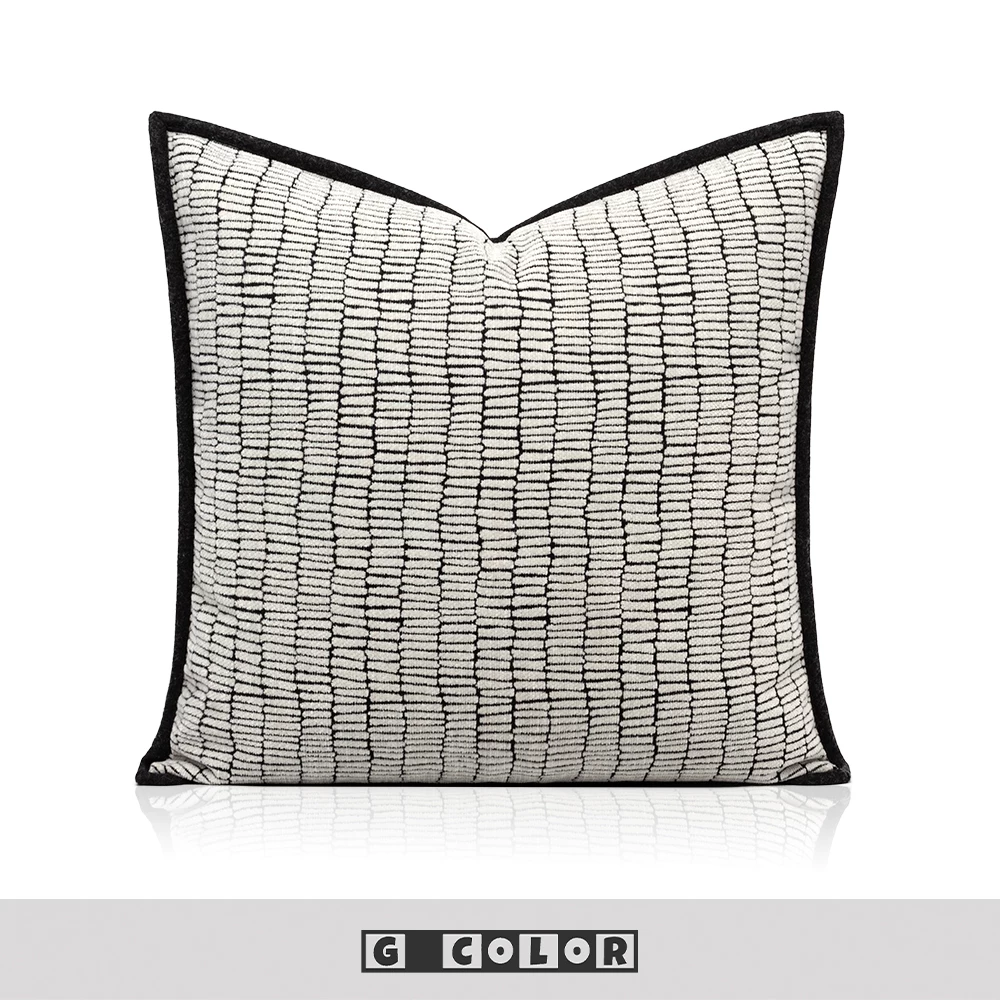 Showroom Sofa Living Room Light Luxury High-End Black and White Shag Pillows Hotel Villa Bay Window Bedside Cushions Pillow Covers