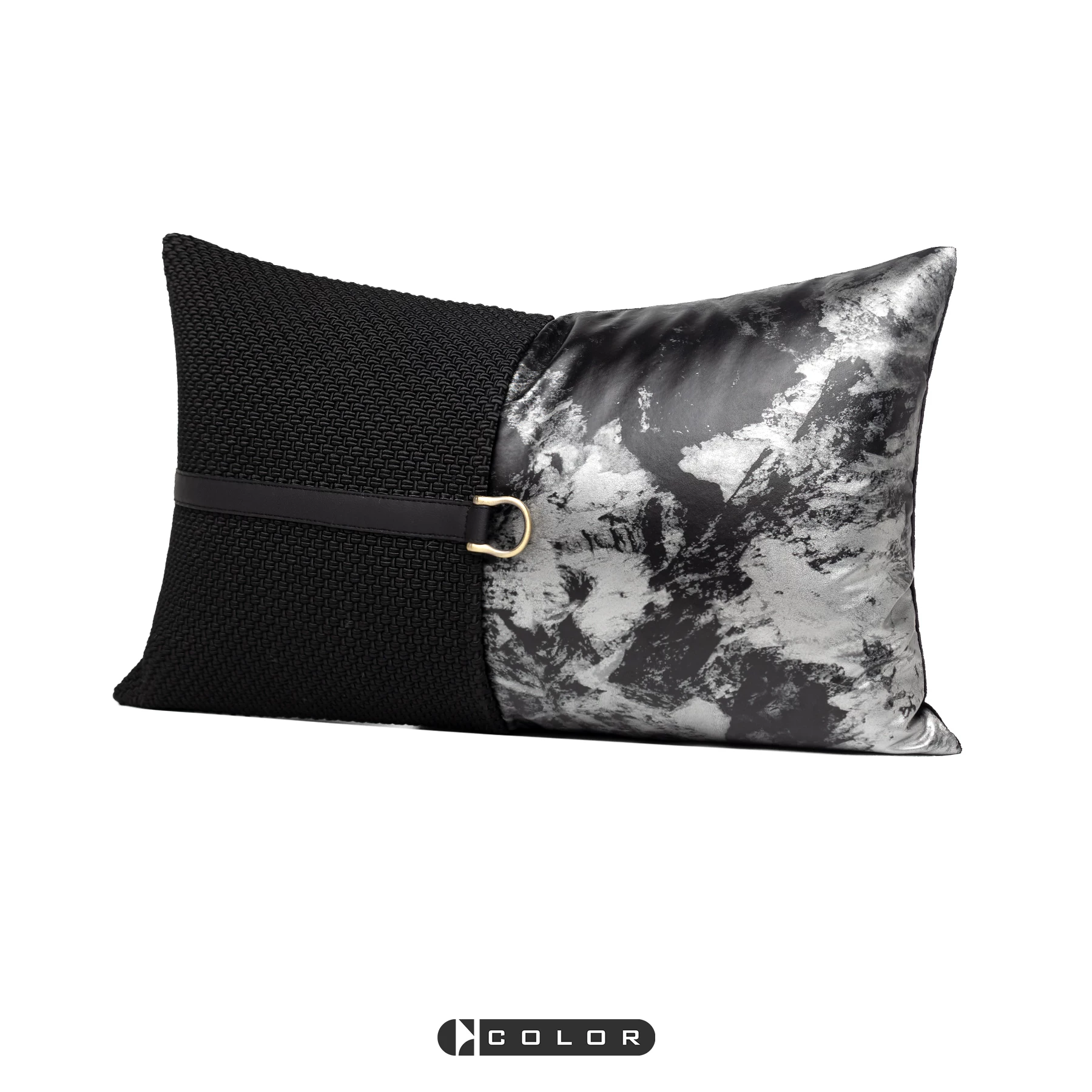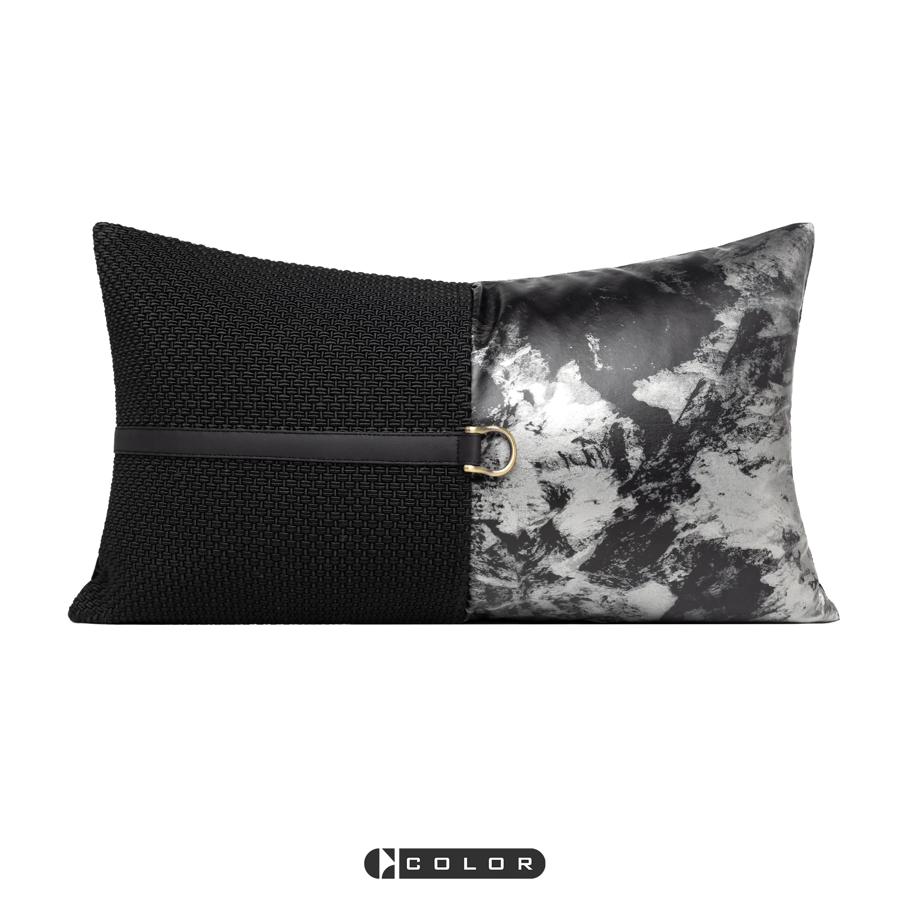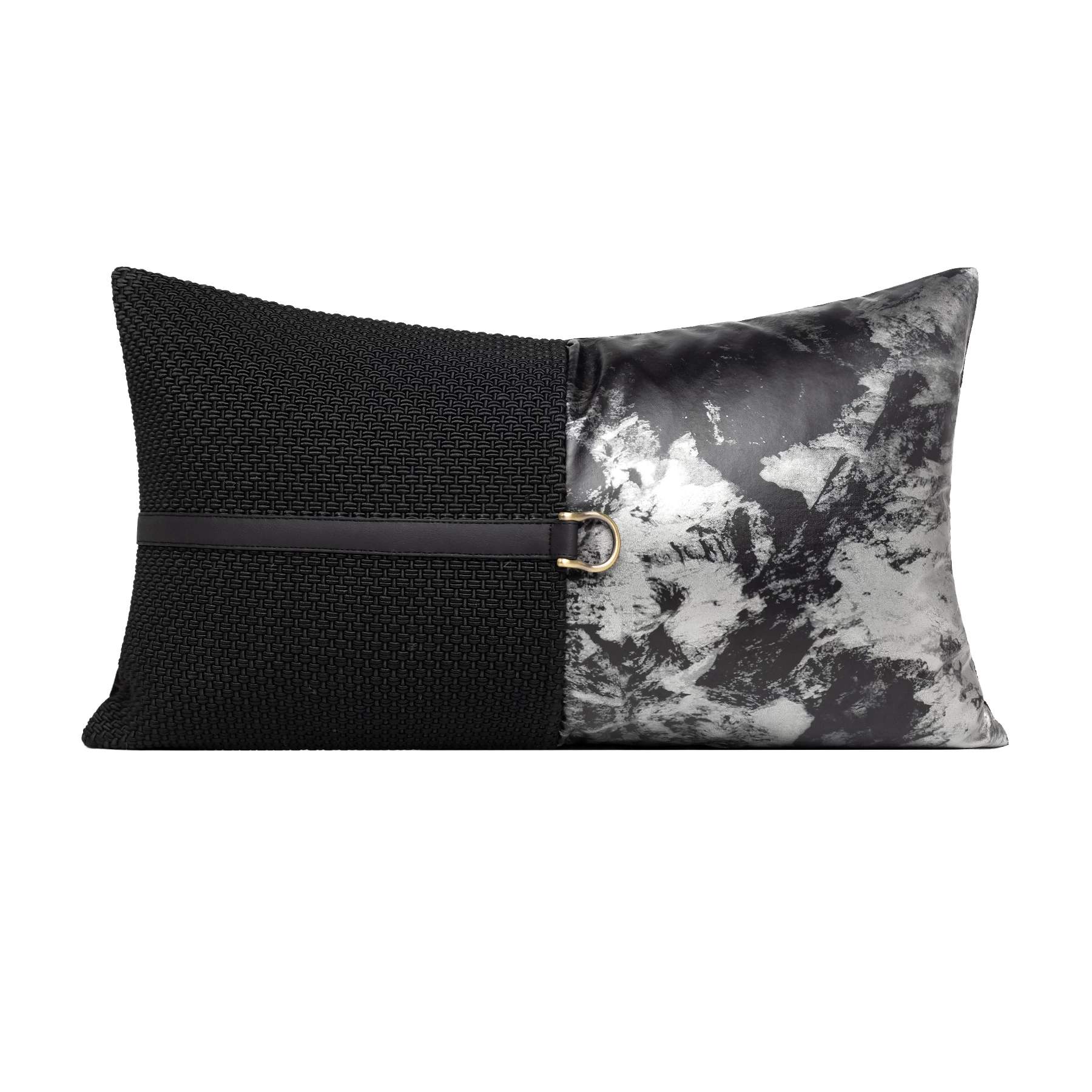 Soft Furnishings: Sofa, Model Home, Bay Window, Modern, Nordic, Italian, Light Luxury, Black Textured Leather Patchwork, Lumbar Pillows, Cushions