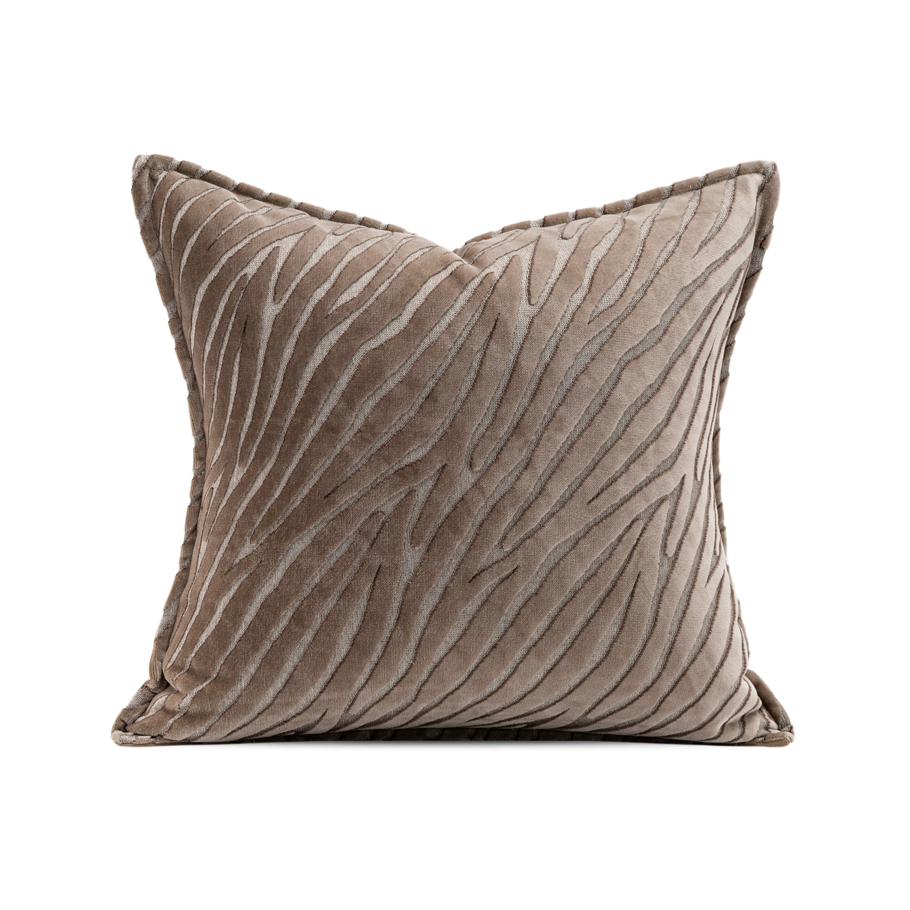 Velvet Deep Brown Cushions: Light Luxury Living Room Sofa Cushions with Wavy Shag Design—Model Home Cushions, Showroom Cushions, and Cushion Covers