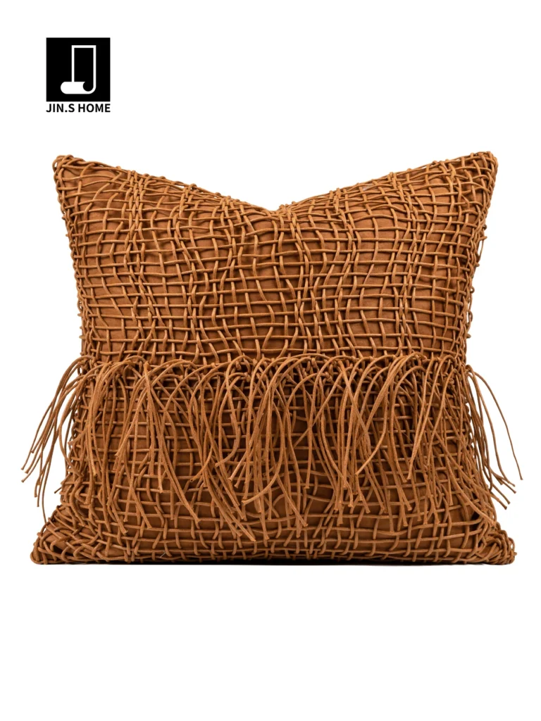 Orange Leather-Cord Woven Square Cushion for Sofas and Living Rooms: A Touch of Luxury—Model Home Villa Bedside Cushion