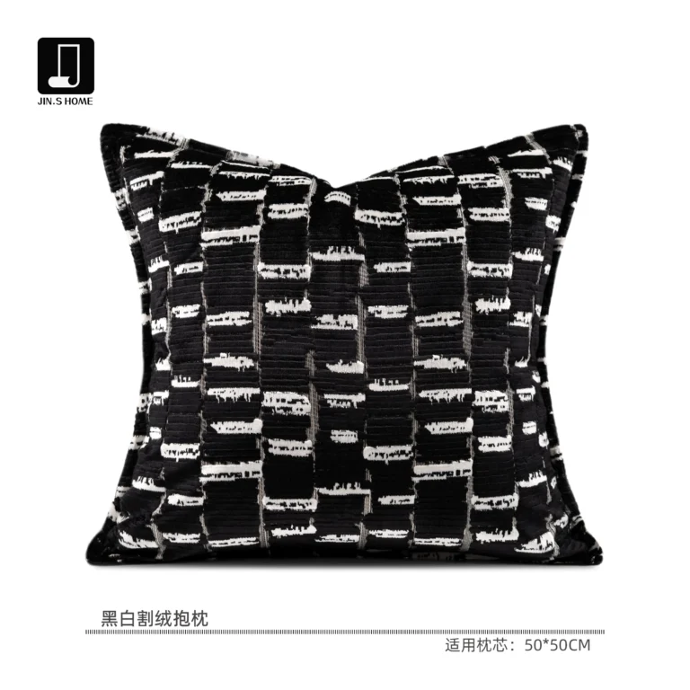 Showroom Sofa Living Room Light Luxury High-End Black and White Shag Pillows Hotel Villa Bay Window Bedside Cushions Pillow Covers
